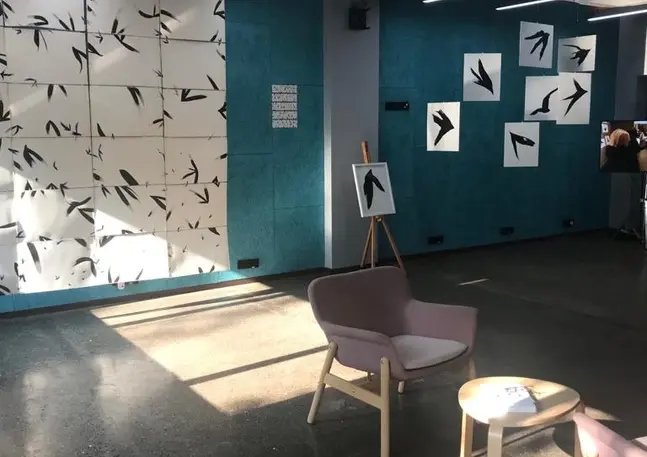 An open, modern office for a multi-disciplinary company; advertising, film production, cultural production etc. The space promotes flexible team-working and is imagined as a living space rather than an 'office'. Part of the space is left open with acoustic treatment; to be used by the production whenever needed or for any kind of cultural animation in other times. It has been used for exhibitions, theatre and literary events.
